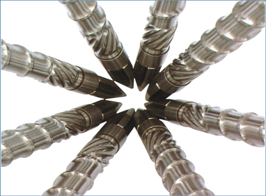 東莞市華鴻塑料機(jī)械廠生產(chǎn)的無鹵螺桿表面全面覆蓋一層鈷與碳化鎢復(fù)合合金粉末涂層,使螺桿具備良好的耐磨、耐腐蝕性。且不宜變性,永久不會(huì)脫落,延長螺桿的壽命,是普通雙合金的三至四倍壽命。特別適合加工PA、PC、無鹵料添加;PA、PC等加纖40%以上;鐵粉、陶瓷粉等極易磨損和污染的原材料。